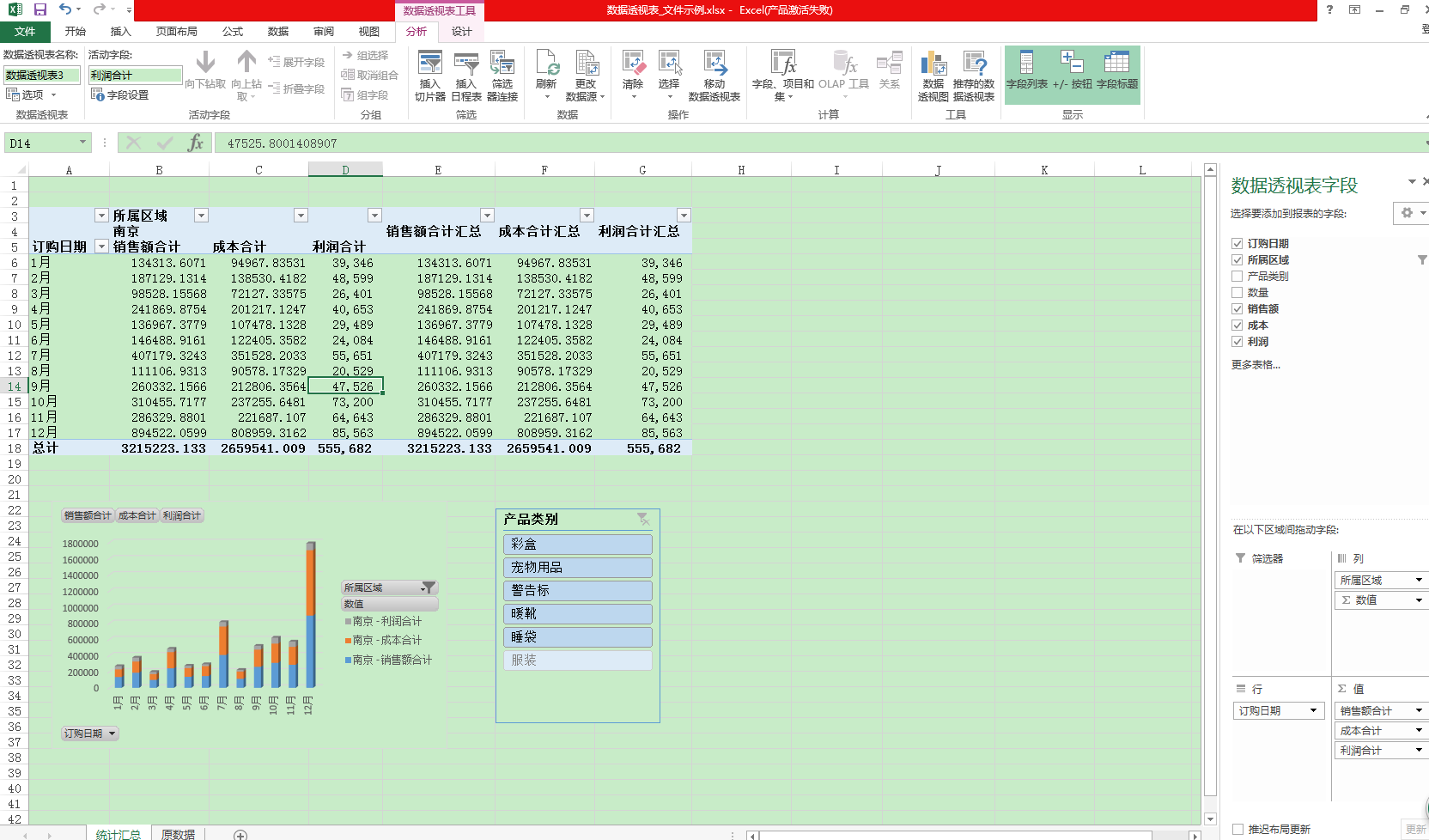 数据透视表的建立、数据计算、表中数据的处理、筛选、切片器使用、多透视表的切片器连动、数据透视图等。