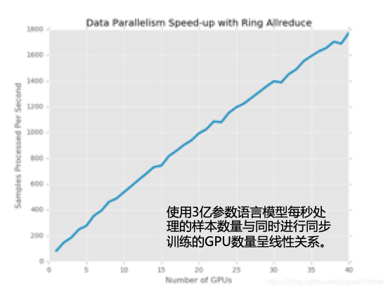 ② 使用Ring-allreduce,通信成本不随 GPU 数量增长而增长,系统拥有理论上的线性加速能力