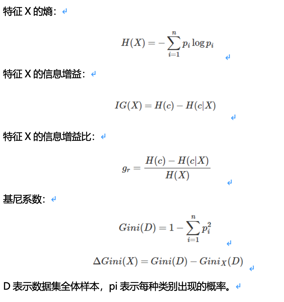 应用:在决策树算法中,ID3使用信息增益、C4.5使用信息增益比、CART算法使用基尼系数。