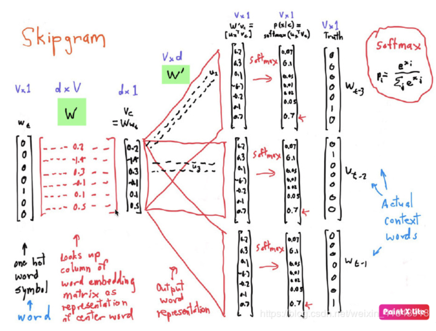 与CBOW类似,但softmax之后取topn的预测结果,n为预测当前词上下文窗口长度内词的个数。